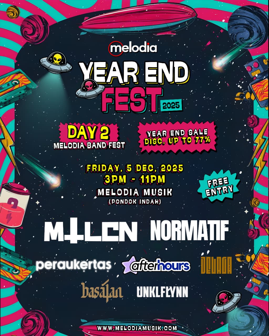 Nikmati energi, musik kencang, dan promo alat musik terbaik hanya di #melodiayearendfest2025.