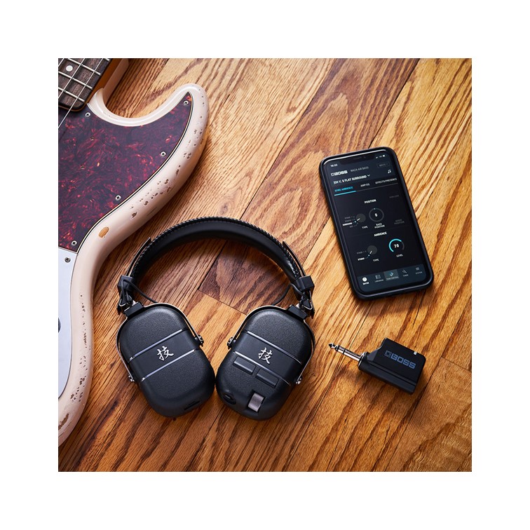 - Over-ear bass guitar sound system with wireless connectivity, premium amp and effect tones, Bluetooth® audio streaming, and sound editing via your smartphone