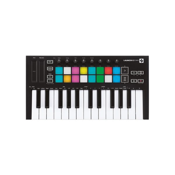 Launchkey Mini is our most compact and portable 25-mini-key MIDI keyboard controller. It gives you everything you need to start creating in Ableton Live – and it’ll fit in your bag. Make tracks anywhere with Launchkey Mini’s intuitive Ableton control, creative arpeggiator, Fixed Chord mode, MIDI out, and tons of sounds in the box.